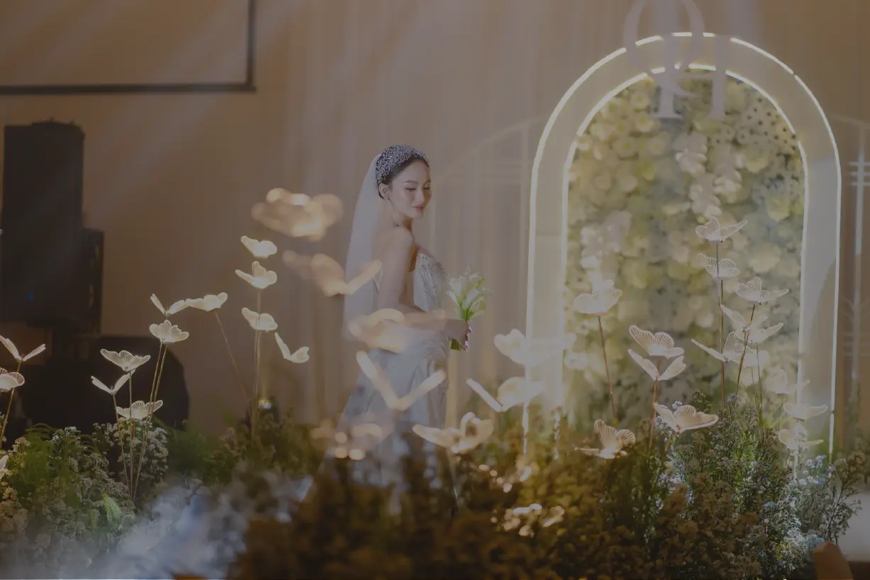 From the reception hall to the ceremony area, images of butterflies and flowers appear everywhere, like a silent blessing, that this love will always be as bright and romantic as the moment the word of love was declared. word.