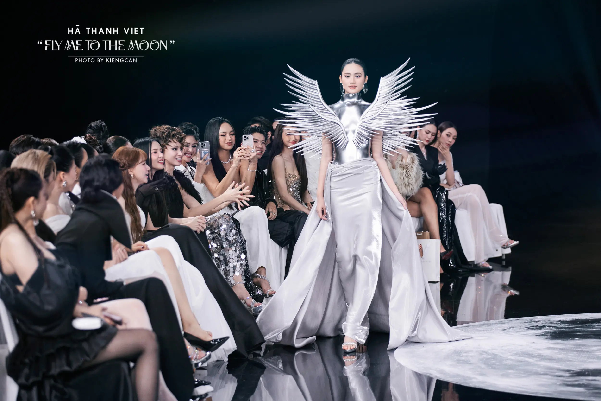 Recently, designer Ha Thanh Viet used her impressive fashion language to present her first solo show called “Fly me to the Moon” at White Palace Pham Van Dong. Within the framework of the event, designer Ha Thanh Viet launched 03 collections with images of warriors who aspire to reach the moon and conquer the universe with passion and a strong creative spirit. That message was vividly spread by the charisma and enchanting catwalk steps of vedette supermodel Thanh Hang, first-face beauty queen Bao Ngoc, beauty queen Y Nhi and nearly 80 models participating in the show.