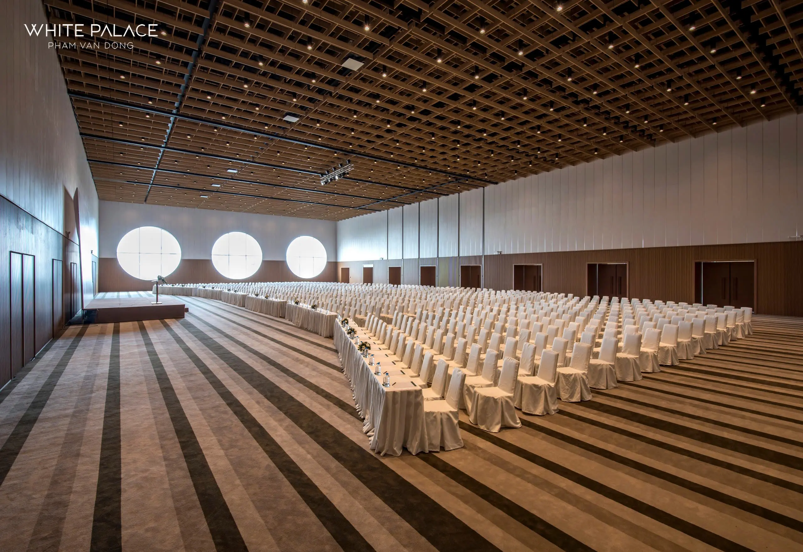 Mang đậm dấu ấn kiến trúc đương đại, White Palace Hoàng Văn Thụ là lựa chọn lý tưởng cho các sự kiện hội nghị, hội thảo doanh nghiệp. Không gian được thiết kế sang trọng, tinh tế với hai đại sảnh lớn cùng ba phòng tiệc cao cấp, đáp ứng linh hoạt quy mô tổ chức từ 100 – 2.000 khách. Sự kết hợp giữa nét thanh lịch, đậm chất nghệ thuật và công năng vượt trội mang đến không gian hoàn hảo cho các sự kiện quan trọng của doanh nghiệp.