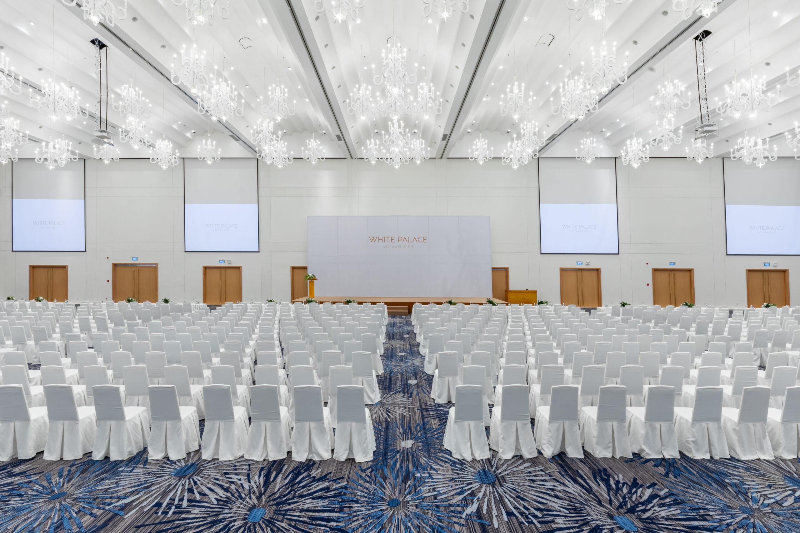 White Palace Võ Văn Kiệt sở hữu hai đại sảnh lớn: Nora và Felix được thiết kế với hệ trần cao hơn 9m, không gian mở không cột, cùng hệ thống vách ngăn di động tuỳ chỉnh linh hoạt cho mọi quy mô hội nghị – từ buổi kick-off nội bộ 100 khách, đến sự kiện ra mắt thương hiệu, hội nghị khách hàng hay hội thảo doanh nghiệp 1.000 khách.