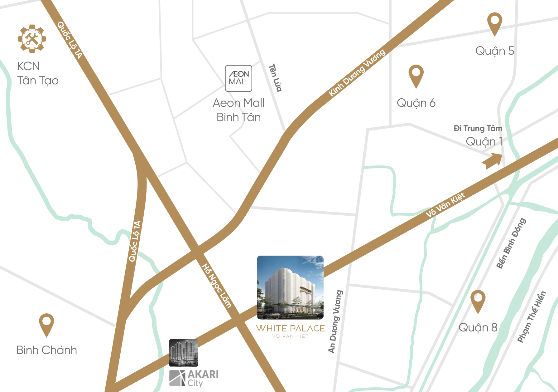 Không chỉ nổi bật bởi quy mô sảnh, White Palace Võ Văn Kiệt còn chinh phục doanh nghiệp nhờ vào vị trí chiến lược tại khu vực phía Nam TP.HCM. Từ đây, chỉ mất vài phút di chuyển để đến trung tâm tài chính của thành phố, đồng thời dễ dàng kết nối với các khu vực lân cận. White Palace Võ Văn Kiệt sở hữu khuôn viên rộng rãi và bãi đỗ xe công suất lớn, nơi đây đáp ứng hoàn hảo những sự kiện quy mô lên đến hàng nghìn khách mà không lo ngại vấn đề giao thông hay không gian.