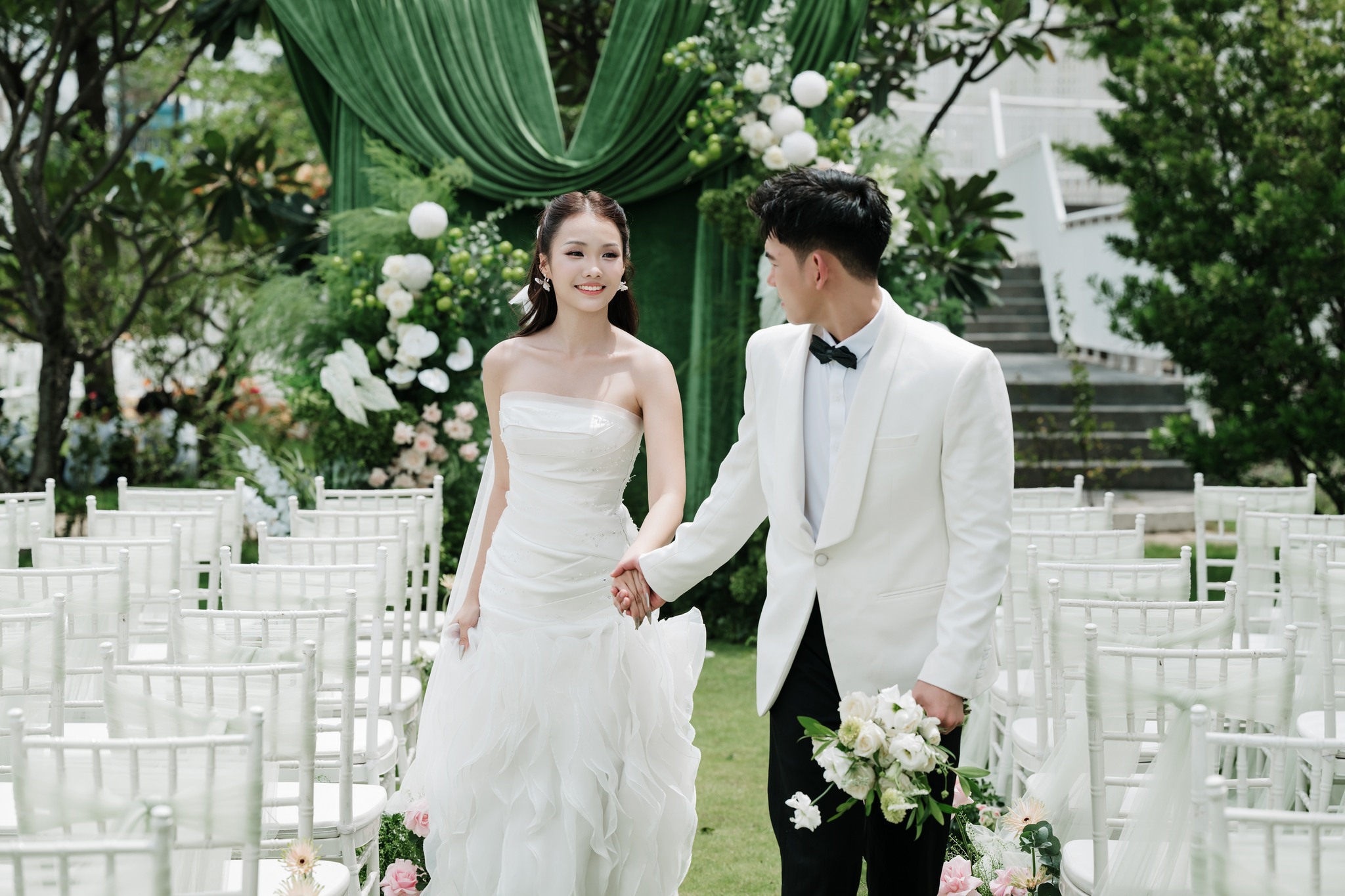 Mỗi concept trang trí là một bản hòa ca cảm xúc, nơi màu sắc, chất liệu và ánh sáng giao thoa để kể nên câu chuyện tình yêu theo cách nhẹ nhàng nhưng đầy mê hoặc. Không phô trương, không cầu kỳ, từng chi tiết được sắp đặt tinh tế và trau chuốt đến từng đường nét – tạo nên một không gian vừa lãng mạn, vừa sang trọng.