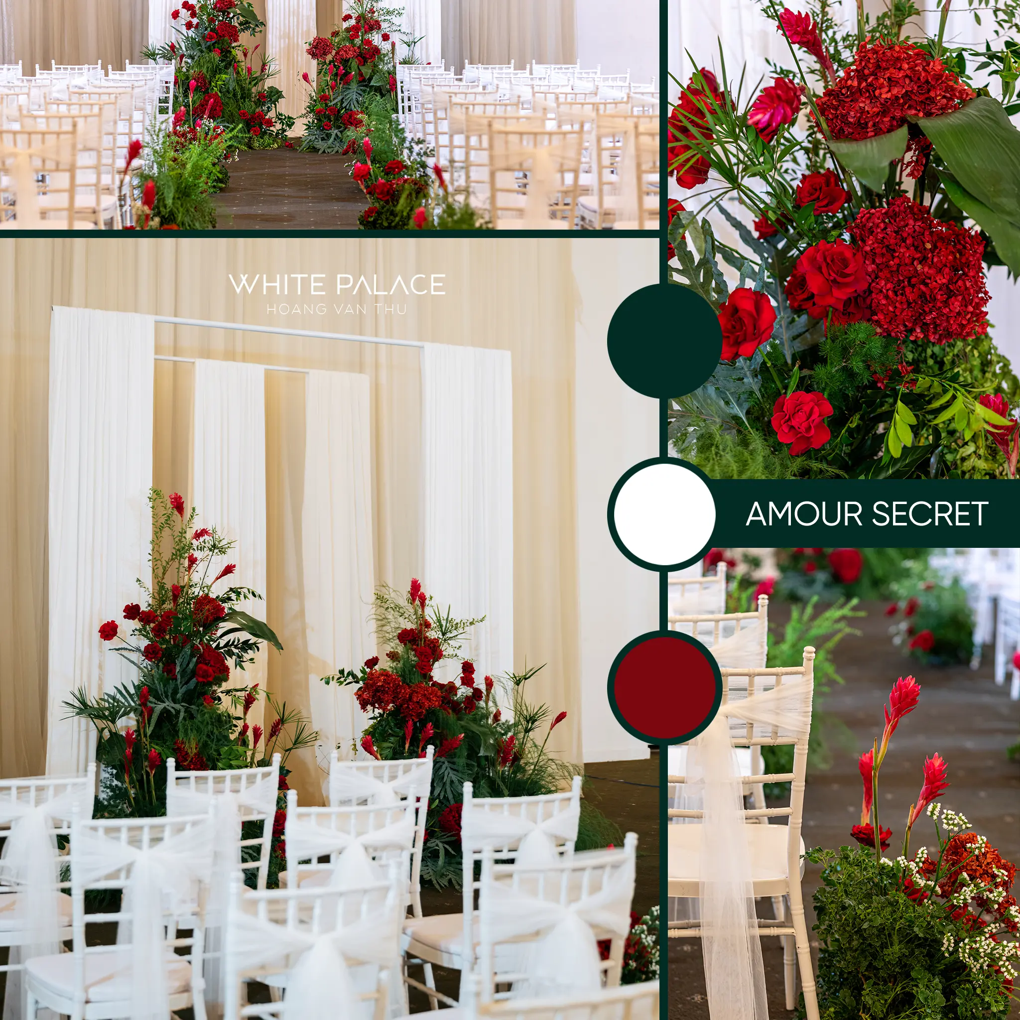 Sắc đỏ đô kiêu kỳ, ấm áp như thước phim lãng mạn. Phù hợp cho cặp đôi cá tính, yêu sự riêng tư, đậm chất nghệ thuật và muốn buổi lễ khắc sâu trong ký ức như một cảnh phim kinh điển.