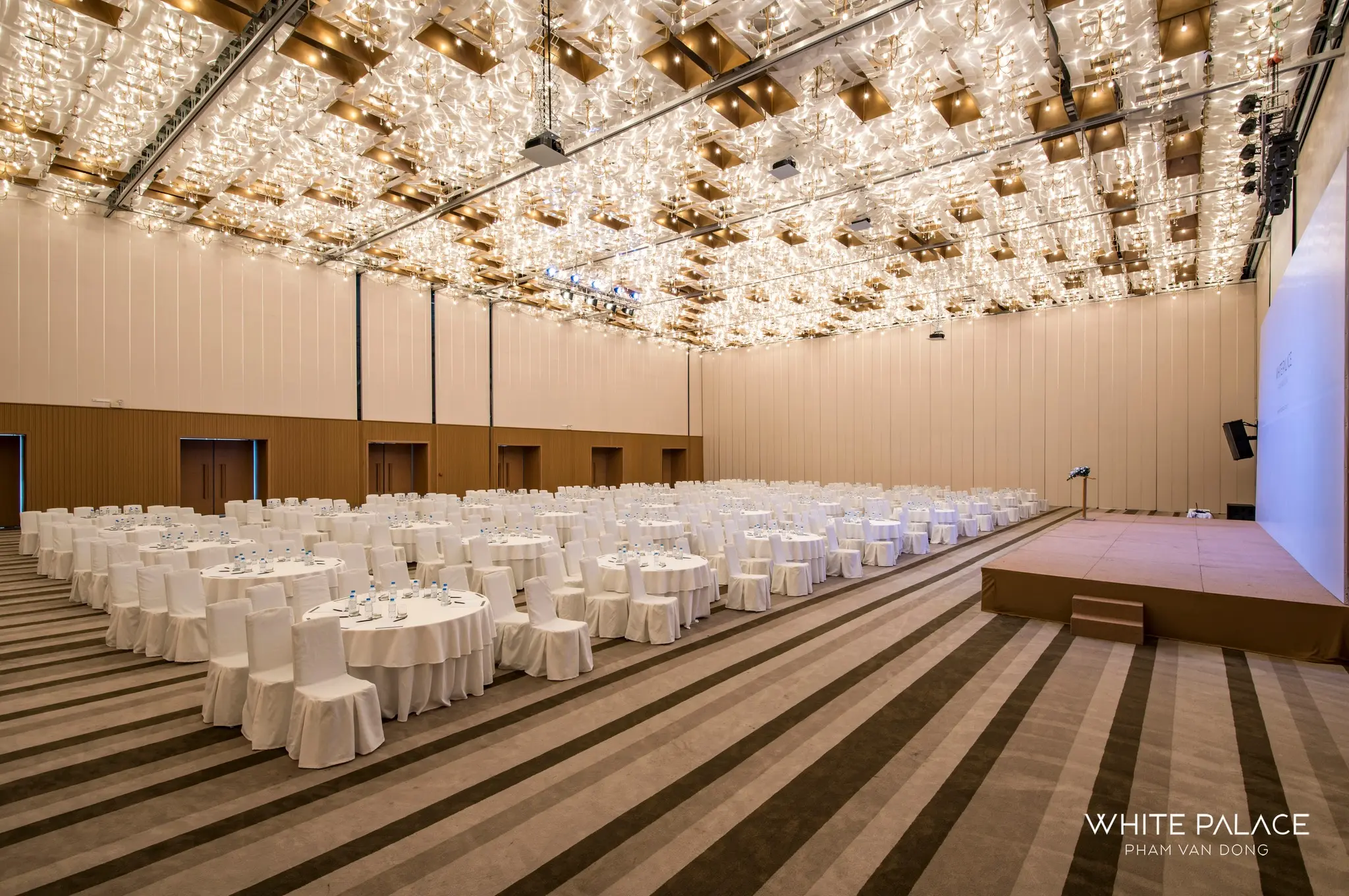 Tại White Palace Phạm Văn Đồng, mỗi sự kiện đều được thiết kế theo phong cách riêng biệt, từ hội nghị doanh nghiệp, triển lãm chuyên ngành đến dạ tiệc sang trọng. Hệ thống không gian linh hoạt cho từ hàng chục đến hàng ngàn khách có thể biến hóa để phù hợp với mọi loại hình sự kiện, giúp tối ưu hóa trải nghiệm và đảm bảo tính thẩm mỹ đẳng cấp.