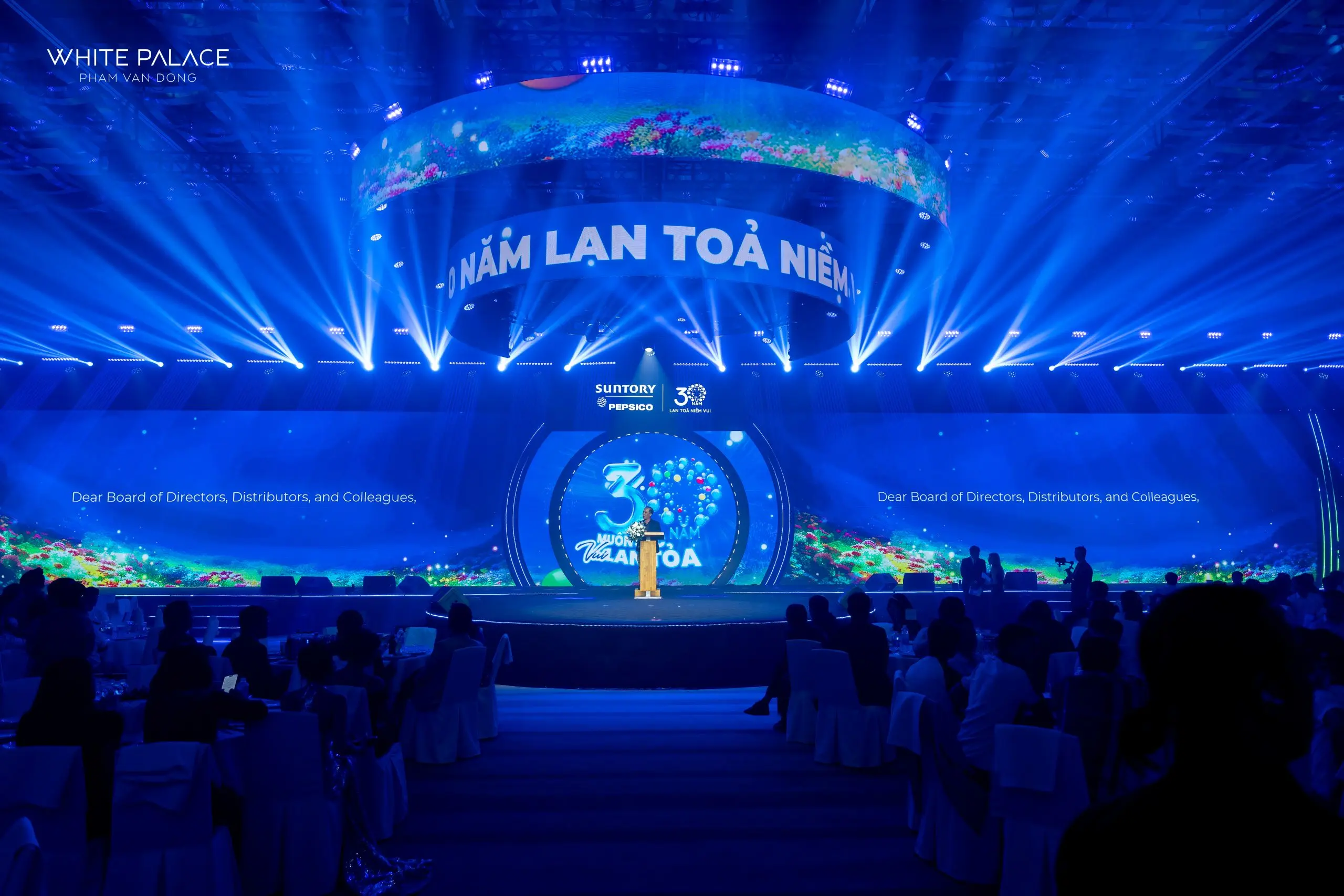 Năm 2025 không chỉ mở ra một hành trình mới mà còn đánh dấu cột mốc 30 năm không ngừng vươn xa với những thành tựu đáng tự hào của Suntory Pepsico Việt Nam – Tập đoàn nước giải khát hàng đầu với các thương hiệu chủ lực như Pepsi, Suntory, Sting, Lipton Iced Tea. Mang thông điệp “Muôn sắc vui lan tỏa”, tập đoàn đã chiêu đãi hơn 1,000 khách mời một đêm tiệc rực rỡ sắc màu và bùng nổ cảm xúc tại sảnh Hall A – White Palace Phạm Văn Đồng.