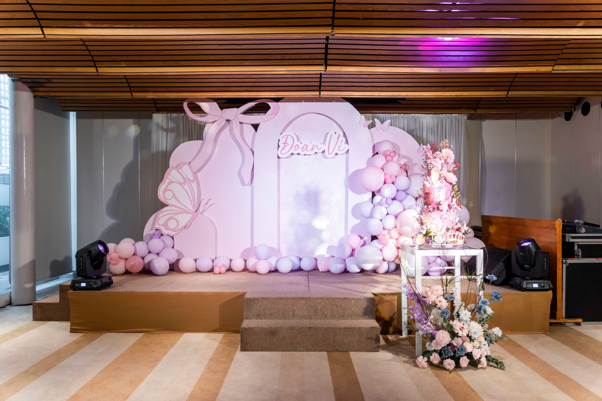 Serene – Sảnh tiệc mang biểu tượng về sự thanh bình, tĩnh tại và an yên đã được biến hoá diệu kỳ với bóng bay và hoa thơm để dành riêng cho bữa tiệc thôi nôi của công chúa nhỏ Đoan Vi. Serene không chỉ là nơi ghi dấu những khoảnh khắc đầu đời ý nghĩa của cô bé, mà còn chứa đựng những giá trị quý báu mà mọi bậc cha mẹ đều mong muốn dành tặng cho con yêu của mình – một cuộc sống bình an và hạnh phúc.