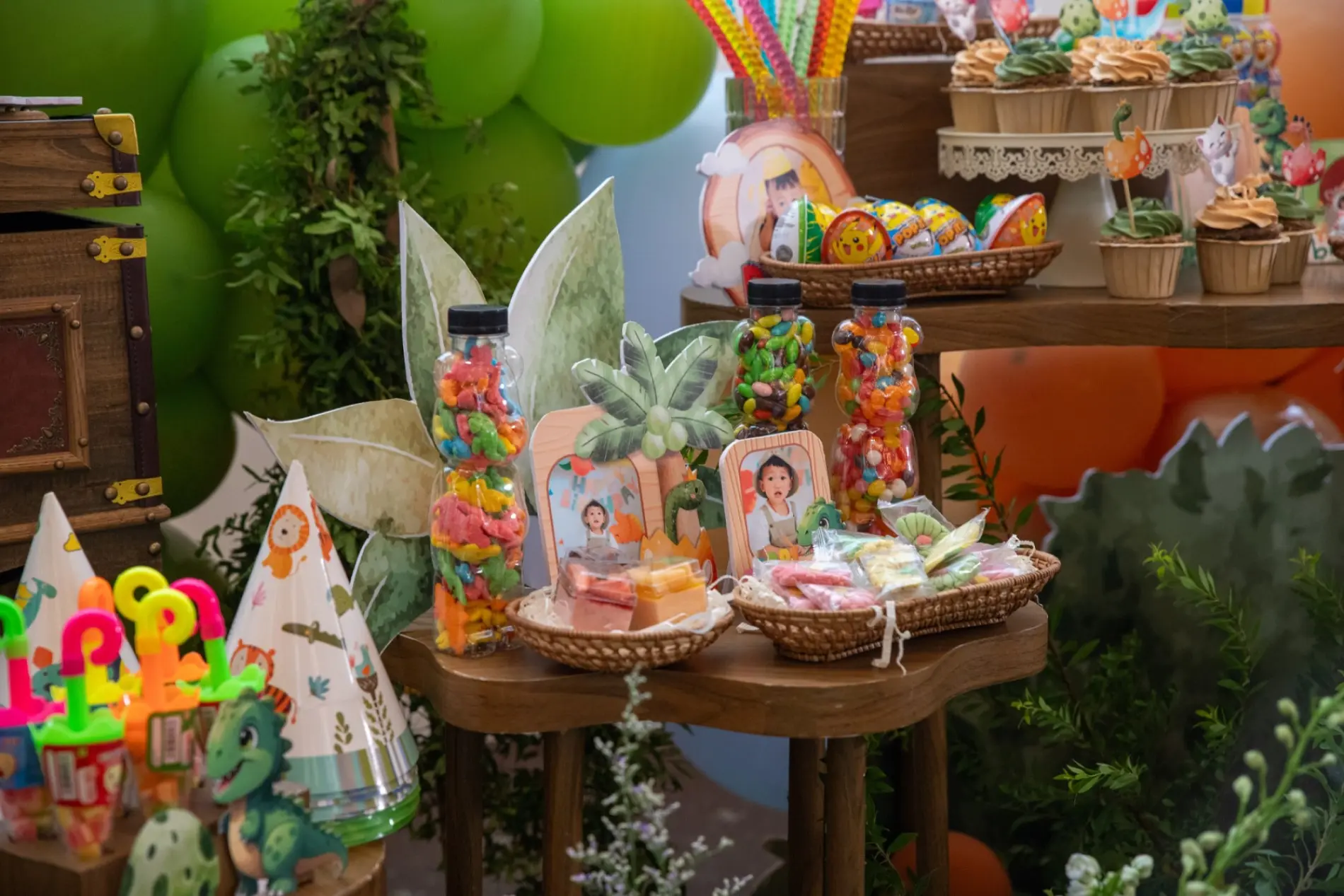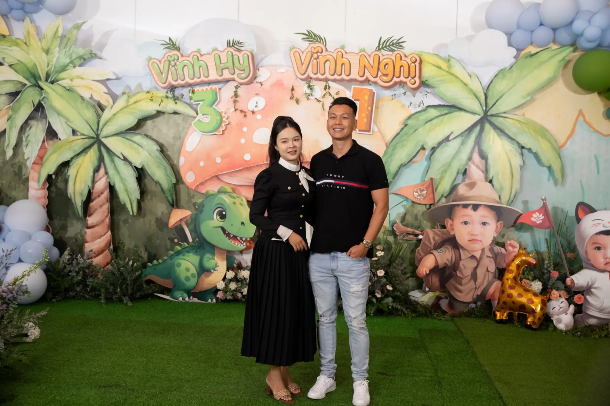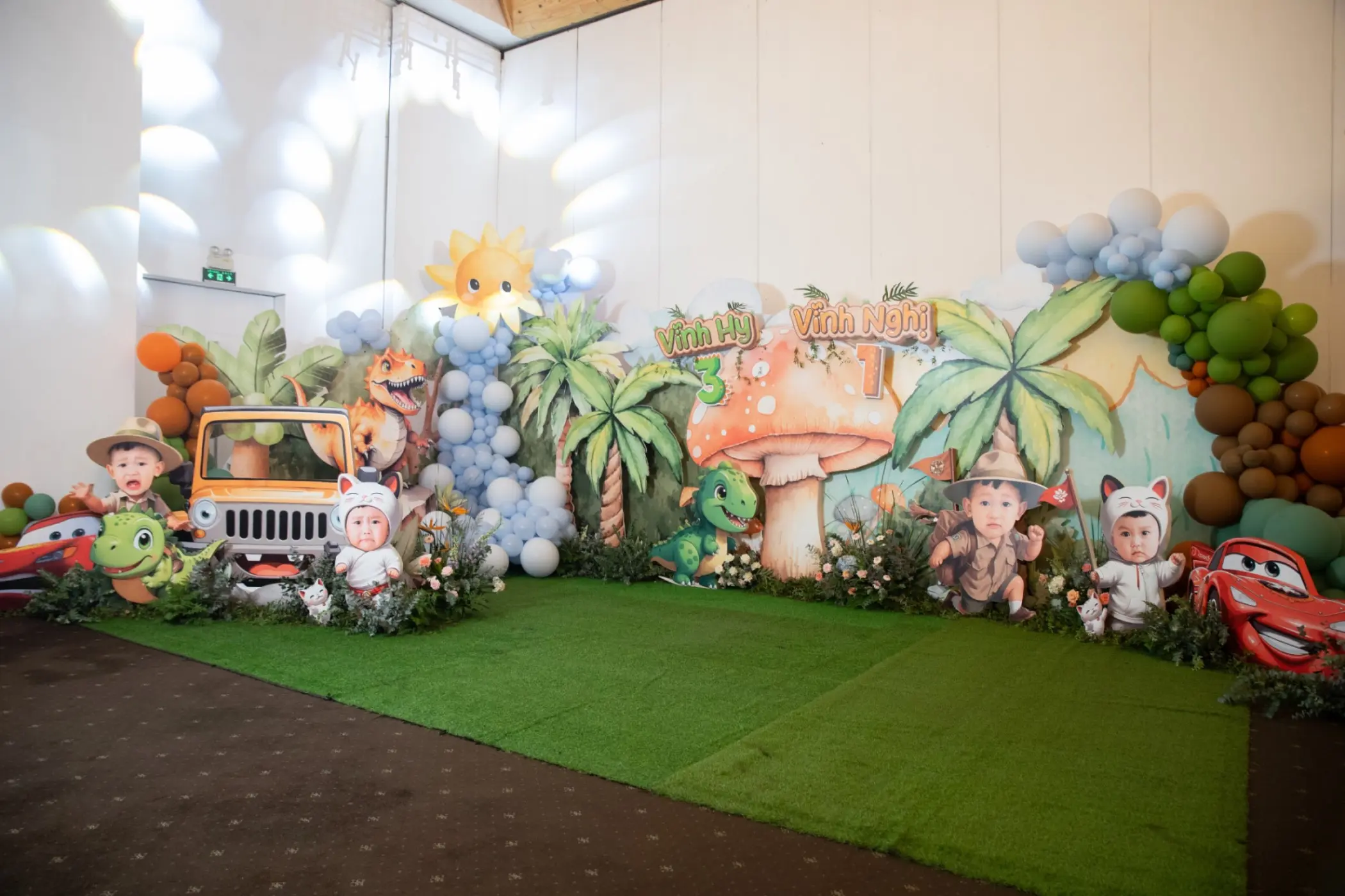 Bên cạnh sân khấu chính phủ hoa tươi rực rỡ, khu vực đón khách cũng được thiết kế như một khu vui chơi thu nhỏ để “chiều lòng” các vị khách nhí đến chúc mừng Vĩnh Hy và Vĩnh Nghị tròn 1 tuổi.