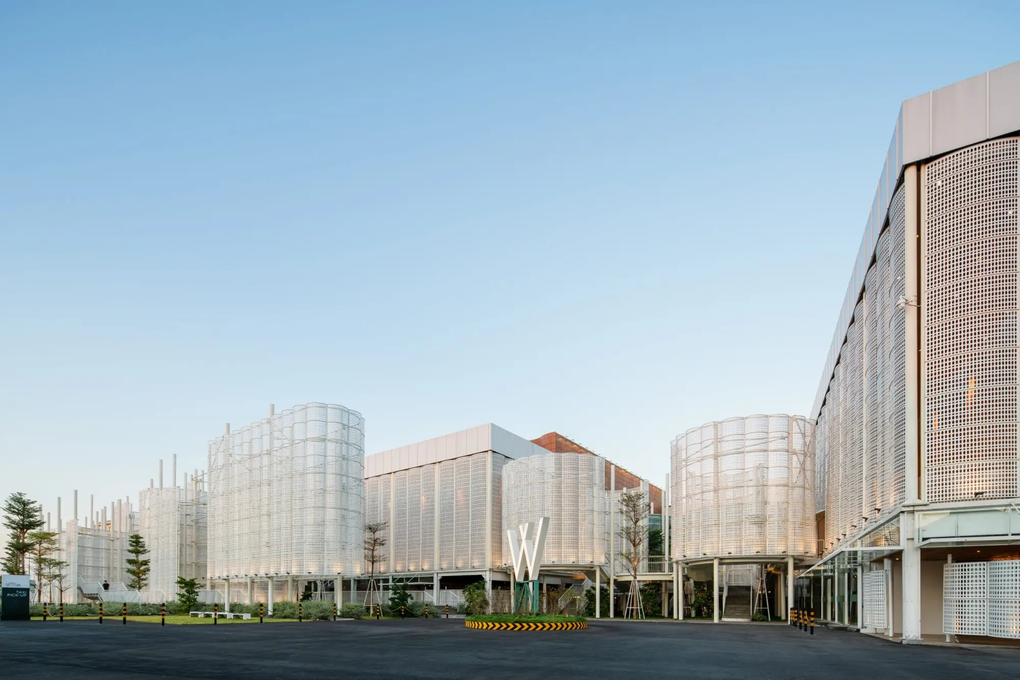 Nhìn từ xa, tổng thể công trình tựa một thương cảng sầm uất với những cánh buồm vút cao, mô phỏng sự giao thoa nghệ thuật với những khát vọng lớn lao trên hành trình kết nối cộng đồng. Kết cấu thép uốn cong với hoa văn hiện đại được lồng ghép lớp lang, nhịp nhàng cùng mảng xanh thiên nhiên căng tràn sức sống, tạo nên những khoảng không tinh tế kết nối các sảnh tiệc.